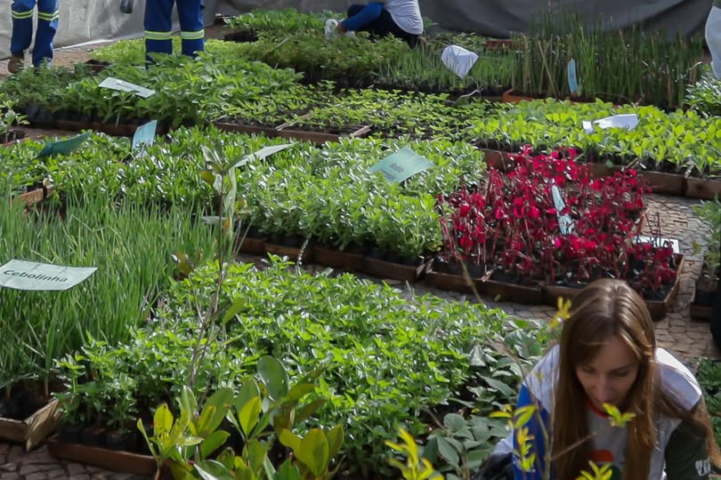 • Hortaliças (5.500 mudas): Itens essenciais para hortas caseiras, incluindo salsinha, coentro, cebolinha, repolho, couve e tomate cereja.