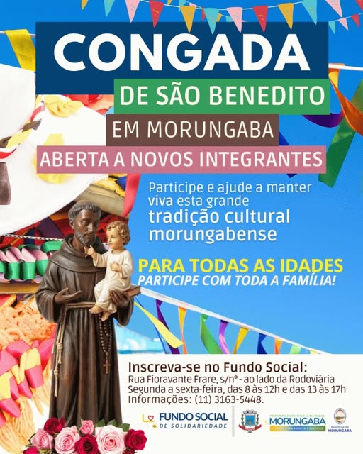Uma das mais expressões culturais tradicionais da Estância Climática de Morungaba, a Congada de São Benedito está com inscrições abertas para novos participantes. A convida moradores de todas as idades a integrarem o grupo e contribuirem para a preservação de uma manifestação que atravessa gerações e mantém viva a identidade cultural do município.