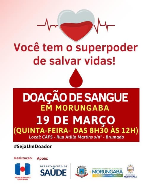A iniciativa conta com a realização do Hemocentro da Unicamp, em parceria com o Departamento de Saúde e a Prefeitura da Estância Climática de Morungaba, além do apoio de instituições locais. A mobilização reforça a necessidade constante de manter os estoques abastecidos para atender pacientes que dependem de transfusões em hospitais e unidades de saúde.