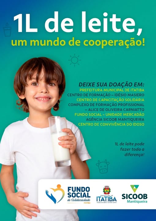 Para contribuir, basta levar o leite a um dos sete pontos de coleta, sendo a Prefeitura e as unidades do Fundo Social - confira abaixo – até a próxima sexta-feira, 29/08. A Sicoob Mantiqueira, instalada no Edifício Fórum 200, também recebe doações, inclusive aos sábados, até o próximo dia 30, quando é comemorado o Dia do Cooperativismo.