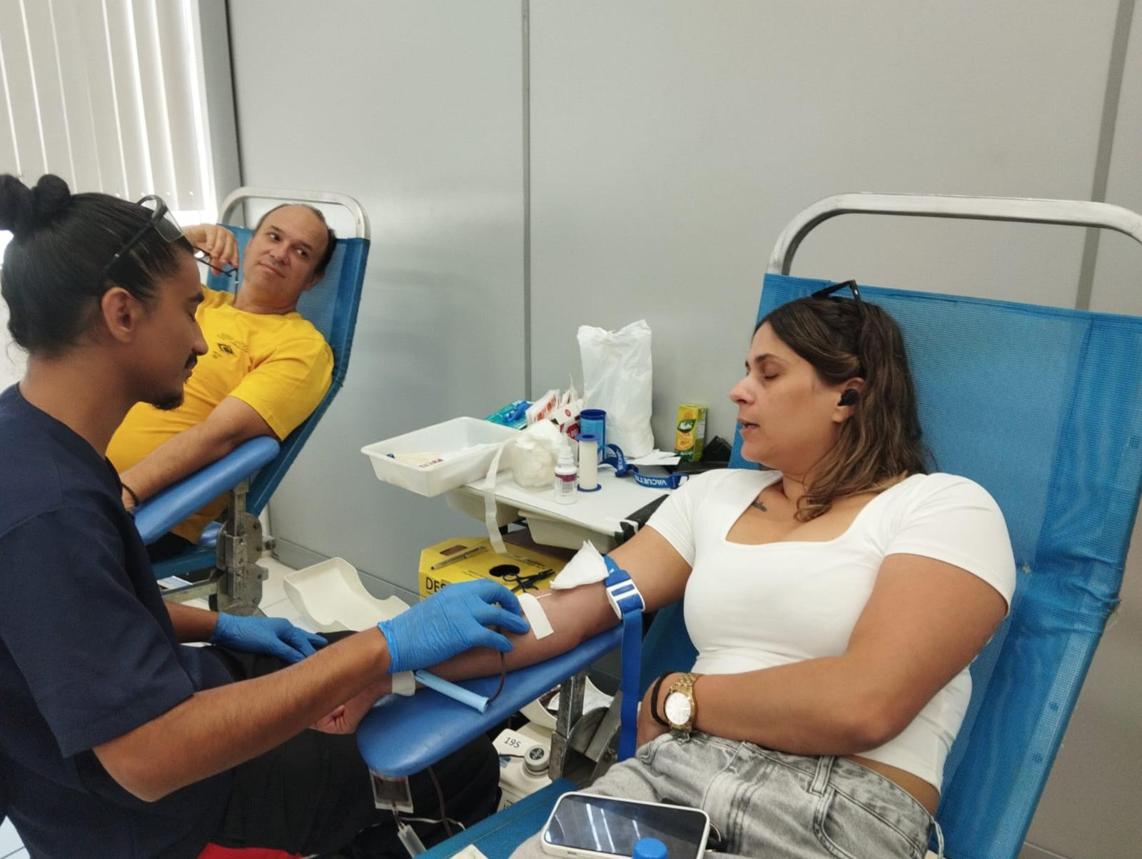 Também presentes os jovens interactianos: Maria Eduarda, Akemi e Kailaine. Suporte: Patrícia da Apami, médico responsável, dr. Aryovaldo Hauck. Trabalhos de coleta da equipe de profissionais do Hemocentro Unicamp Campinas.