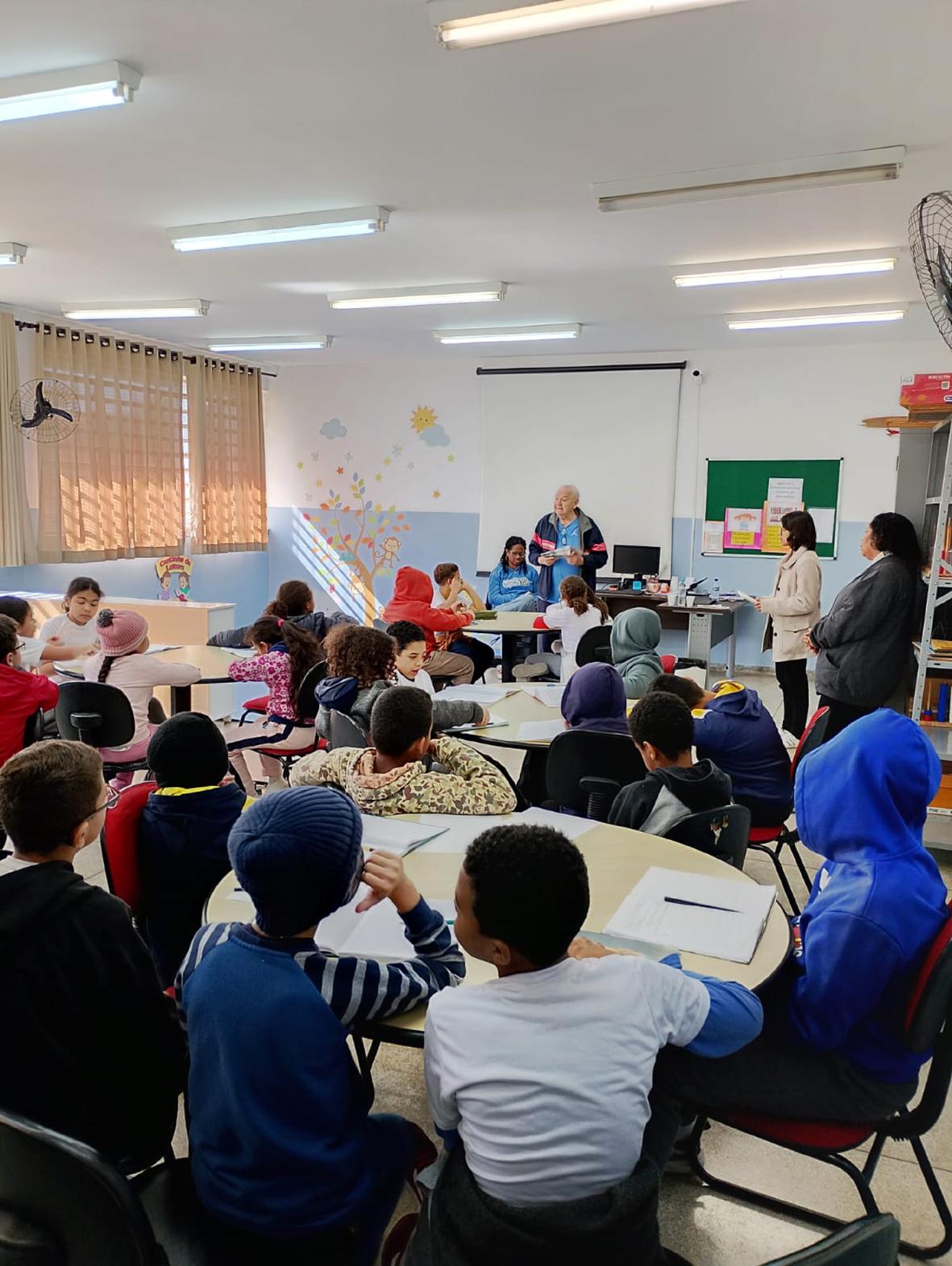 O encontro reuniu duas turmas do 4º ano e uma do 2º ano, que passaram cerca de uma hora e meia na biblioteca dialogando sobre a história de Itatiba.