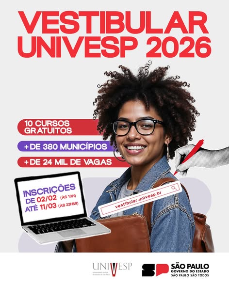 A Universidade Virtual do Estado de São Paulo (Univesp), vinculada à Secretaria de Ciência, Tecnologia e Inovação (SCTI), está com inscrições abertas para o Vestibular 2026. Itatiba é um dos 456 polos e oferecerá 54 vagas para cursos específicos gratuitamente no Ensino Superior