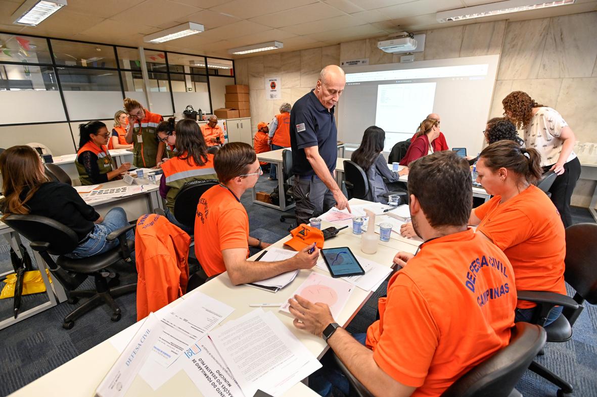 À tarde, as equipes participam da simulação em fases. O exercício prevê a ativação do COE, a criação da Sala de Situação e a definição da cadeia de comando, garantindo comunicação eficaz entre os setores. O cenário inclui desde ações iniciais de apoio à população até estratégias de proteção da infraestrutura, evacuações emergenciais e comunicação com a comunidade para reduzir riscos adicionais.