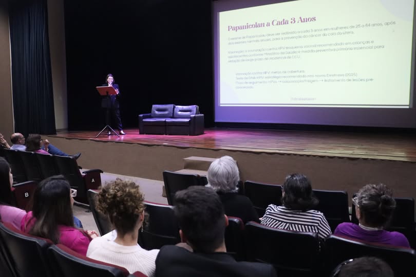 A palestra, intitulada "Muito Além do Laço Rosa: Um Olhar para Toda a Saúde da Mulher", foi ministrada na noite de sexta-feira (31/10), no Teatro Municipal Fioravante Frare.